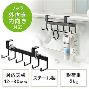 デスク クランプ フック ケーブルトレーハンガー 固定 後付 Mサイズ フック4本 金属製 ブラック