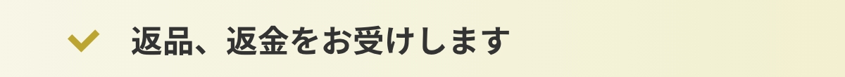 万が一のときもご安心を。商品にご満足いただけない場合、返品・返金を迅速に対応いたします。安心してお買い物をお楽しみください。